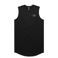 Crew neck, curved hem, sleeveless tank, hemmed armhole edges